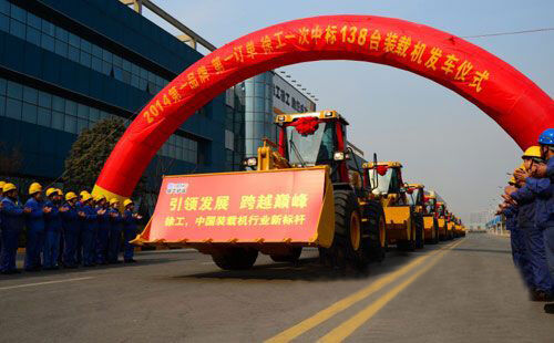 近日,“第一品牌,第一訂單,徐工一次中標(biāo)138臺裝載機(jī)”發(fā)車儀式在徐工鏟運機(jī)械事業(yè)部舉行。整齊鮮亮的裝載機(jī)身披紅花如“出征勇士”,為充滿節(jié)日氛圍的徐工裝載機(jī)智能化制造基地更增添一份喜慶,吸引了大量員工駐足,自發(fā)為他們壯行。簡樸的儀式,火熱的場面,激動的心情,在場人員無不為徐工鏟運機(jī)械事業(yè)部在馬年率先奪得中國裝載機(jī)行業(yè)第一單,實現(xiàn)漂亮的開門紅而歡欣鼓舞。