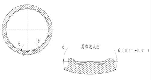 在內(nèi)孔加工過(guò)程中,油穴與內(nèi)壁交接處自然形成0.10~0.30的楔形角,不僅提高了布油效率,而且兩排油穴之間的部分形成類(lèi)似滾珠的弧形面,使軸套內(nèi)壁具有了滾動(dòng)軸承的特點(diǎn)。