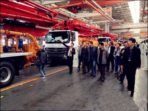 25日上午,考察團(tuán)全體成員在三一重工一號(hào)會(huì)議室召開了2014年度山東省混凝土協(xié)會(huì)會(huì)長工作會(huì)議,三一重工泵送營銷公司副總經(jīng)理王暾先生致歡迎詞,會(huì)議對(duì)2014年全年工作進(jìn)行部署、攪拌站評(píng)優(yōu)等問題展開討論。12點(diǎn)40分,考察團(tuán)參觀了三一產(chǎn)業(yè)園,一進(jìn)廠區(qū),一排排鮮紅锃亮的混凝土泵車像是巨人般列隊(duì)歡迎,亞洲最大的花園式18號(hào)廠房、一塵不染的總裝車間、豐富多彩的企業(yè)文化、振奮人心的發(fā)展前景,讓考察團(tuán)領(lǐng)導(dǎo)班子頻頻點(diǎn)贊,感嘆三一不愧為世界級(jí)工程機(jī)械制造商,充分肯定了三一重工在混凝土行業(yè)中的龍頭地位。參觀后,考察團(tuán)集體合影留念。