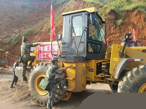 趕到災(zāi)區(qū)的徐工救援隊指揮徐楠聯(lián)系上當?shù)卣筒筷?,在辦理好登記等相關(guān)手續(xù)后,積極請戰(zhàn)要求分派任務(wù),主動要求到最困難和最需設(shè)備的地方。中國武警部隊第三總隊領(lǐng)導(dǎo)經(jīng)過現(xiàn)場開會部署,決定臨時征用徐工一臺裝載機加入武警救援部隊。