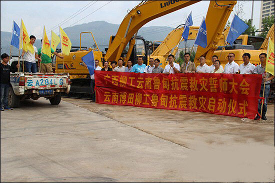 柳工機(jī)械云南魯?shù)榭拐鹁葹?zāi)誓師大會(huì)啟動(dòng)