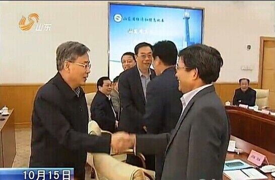 郭樹(shù)清省長(zhǎng)與張義華董事長(zhǎng)親切握手