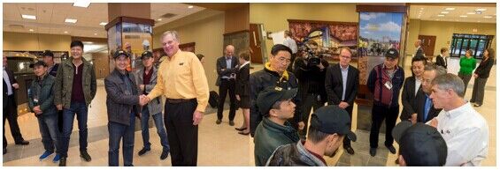美國中部時(shí)間11月11日上午,Cat鋼鐵英雄爭霸賽盟主一行抵達(dá)卡特彼勒公司坐落于奧羅拉市的Cat裝載機(jī)工廠,展開為期兩天的卡特彼勒公司參觀訪問。隨后,盟主們輾轉(zhuǎn)皮奧里亞市,重溫卡特彼勒百年輝煌之路,訪問了生產(chǎn)推土機(jī)的卡特彼勒東皮奧里亞工廠和卡特彼勒的訪客中心,并在美國中部時(shí)間12日下午抵達(dá)愛德華茲演示與學(xué)習(xí)中心,通過遙控駕駛體驗(yàn)了Cat D11T大型推土機(jī)。傍晚時(shí)分,卡特彼勒董事長兼首席執(zhí)行官道格拉斯?歐博赫曼與其他公司全球高層熱烈歡迎各位盟主的到來,并認(rèn)真傾聽了他們對Cat產(chǎn)品設(shè)備的訴求。
