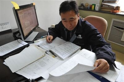 近日,記者來(lái)到位于西四環(huán)的混凝土攪拌站,走進(jìn)維修車間,石新雨和他的徒弟正在車床前忙碌著。見到記者進(jìn)來(lái),石新雨的徒弟說(shuō),“是采訪‘牛哥’來(lái)的吧!他可是我們這兒的大能人?!笔掠臧咽掷锏幕罡赏辏钢饷鎭?lái)往的水泥灌車和鏟車對(duì)記者說(shuō),“這些車輛和攪拌站設(shè)備都是我們維修保養(yǎng),為了保障設(shè)備運(yùn)行生產(chǎn),我們必須掌握一些技術(shù)?!彼弥掷飫偧庸ず玫囊粋€(gè)零件說(shuō),“這是水泥罐車上的一個(gè)易損件,經(jīng)過(guò)我們加工改造,可以節(jié)約50%成本。”走進(jìn)維修車間旁邊他的辦公室,隨處可見許多技術(shù)專業(yè)書籍,涉及到機(jī)械、液壓液力、電子控制、軟件應(yīng)用等方面的內(nèi)容。石新雨說(shuō),“這些書是我的‘專業(yè)技術(shù)老師’”。