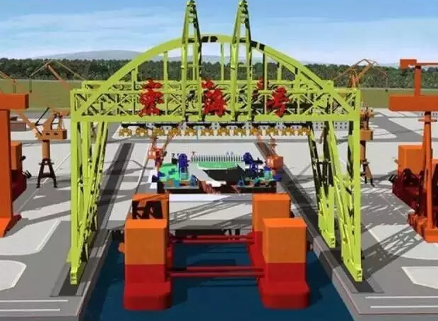 “宏?!碧?2000噸起重機,主要用于海上石油鉆井平臺整體的從陸地運到海上,將以往“化整為零”的建造方式變?yōu)椤罢嬲 薄=柚?2000噸起重能力的“大家伙”,把拼裝好的海洋油氣鉆井平臺從陸地上的專用拼裝胎位上提起來,直接放到海上去。設備總體高度150米,提升高度最高為65米,相當于把重量為500節(jié)高鐵車廂或20層樓高的超重、超大型物件提升起來并行走。主體采用桁架式結構、拱形外觀、多吊點雙吊梁承載,跨度124.3米,宏海號總重14800噸,相當于兩個埃菲爾鐵塔的重量?!伴_下門,快遞到了啊,你的鉆井平臺~”