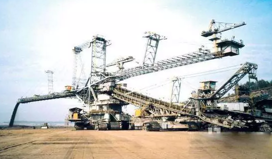 排土能力達到34000噸/小時,臂長超過120米。皮帶排土機為移動式連續(xù)工作的排料設備,它們將來自可移動梯段皮帶運輸機的物料排卸在料堆上,借助皮帶轉載車和皮帶滑行轉載車將物料輸送到排土機。排土機有能力堆高低地、作為行駛路面的平盤,以便隨后用做新采區(qū)的卸料、堆高。除此之外,還可以使用一部皮帶排土機為可移動梯段皮帶運輸機堆起一個高平面。說白了,它就是一個堆土的設備嘍~