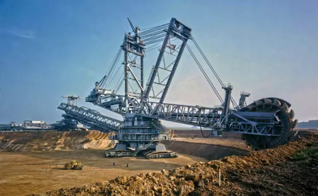 這是由德國克虜伯Krupp出品的世界上最大挖掘機,96米高(相當于30層樓),240米長,49米寬,14210噸重,其裝備20個8.6立方米鏟斗,總裝機容量2萬千瓦,輪斗驅動采用3臺1680千瓦電機,總功率5040千瓦(6600馬力)。只需一天,這個大家伙就能挖出24萬立方米土。曾有一次一輛80噸的推土機不幸被挖起并塞到了輪斗軸承里,可見它的力量之大。其移動速度最大為600m/h,制造費用達到1億美元。挖掘機技術哪家強?德國克虜伯敢稱王~