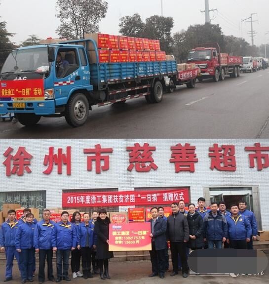 近日,八輛大卡車滿載著徐工全體員工的捐款和衣物,緩緩駛?cè)胄熘菔猩鐣头鲋行?,送去徐工承?dān)的社會責(zé)任、徐工人的美德。2015年,在各單位的全力支持和全體員工暖暖愛心的捐助下,徐工集團(tuán)扶貧濟(jì)困“一日捐”活動(dòng)共收到捐款1382175.5元、捐衣物13830件,連續(xù)14年捐款捐物全市第一。