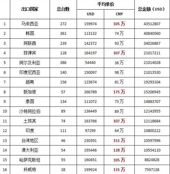 2015年1—11月我國(guó)塔機(jī)出口3098臺(tái),同比減少14.68%,出口金額達(dá)到39303.24萬(wàn)美元,同比減少6.95%,預(yù)計(jì)全年出口3300臺(tái)左右,相比國(guó)內(nèi)市場(chǎng)接近50%的銷(xiāo)量跌幅,塔機(jī)出口成績(jī)可嘉。尤其2015年上半年相比去年同期增長(zhǎng)了16.7%,但從7月份開(kāi)始逐月走低。從近10年的區(qū)域占比來(lái)看,中國(guó)塔機(jī)出口的市場(chǎng)一直由亞太地區(qū)市場(chǎng)占據(jù)絕對(duì)主力,從近三年的數(shù)據(jù)可以看出,雖然歷年各國(guó)排名都有變化,但除了俄羅斯聯(lián)邦、土耳其、巴西、阿爾及利亞等國(guó)家外,其他列于榜單中的國(guó)家全部位于亞洲區(qū)域,顯而易見(jiàn),我國(guó)塔機(jī)出口主要市場(chǎng)依舊是亞洲等發(fā)展中國(guó)家。(具體參見(jiàn)下圖:2015年1—11月塔機(jī)出口數(shù)據(jù))