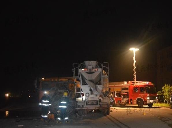 李先生回憶稱,兩輛相撞的車是一輛是白色的水泥攪拌車,另一輛是黃色的大貨車。水泥攪拌車上的駕駛室有一男司機,大貨車上有一男司機,副駕駛室有一受傷女子,后掉落在地上呼救。