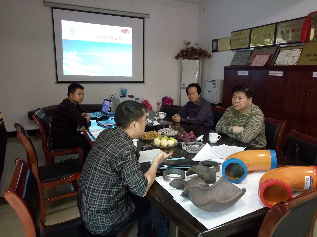 2016年5月1日上午,受長沙天賦機械設備有限公司熱情邀請,符忠軒會長利用五一假期時間對混凝土機械配件——耐磨彎管供應商進行了走訪調研。