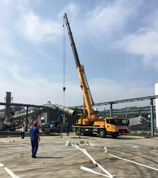 23日下午,由6名人員、4臺起重機(jī)、1臺挖掘機(jī)和兩輛服務(wù)車組成的救援小分隊(duì)趕到鹽城阜寧縣災(zāi)區(qū),緊急與當(dāng)?shù)鼐仍渚?、政府取得?lián)系,聽從統(tǒng)一指揮,全力投入現(xiàn)場搶險。