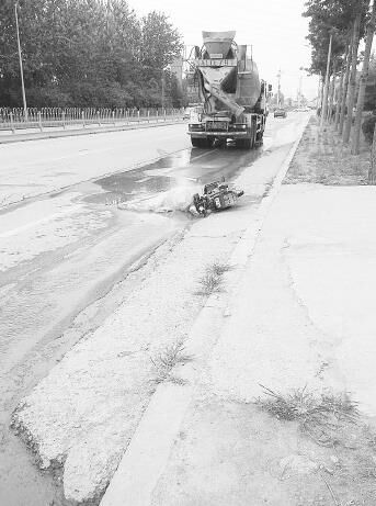 “這個女的騎著電動車,看起來30歲左右,開攪拌車的司機(jī)是個男的,兩人都是由南向北同向行駛?!备浇患疑痰昀习甯嬖V記者,當(dāng)時兩人前面還有一輛灑水車在工作,電動車和攪拌車都避開了這輛灑水車?yán)^續(xù)行駛。