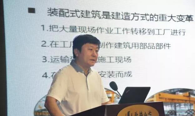 ▼ 山東萬(wàn)斯達(dá)集團(tuán)董事長(zhǎng)張波做“建筑產(chǎn)業(yè)化概論“的演講;