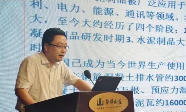 ▼ 中國(guó)混凝土與水泥制品工業(yè)協(xié)會(huì)排水管專(zhuān)家褚建中做“綜合管廊及海綿城市的預(yù)制混凝土構(gòu)件”的演講;