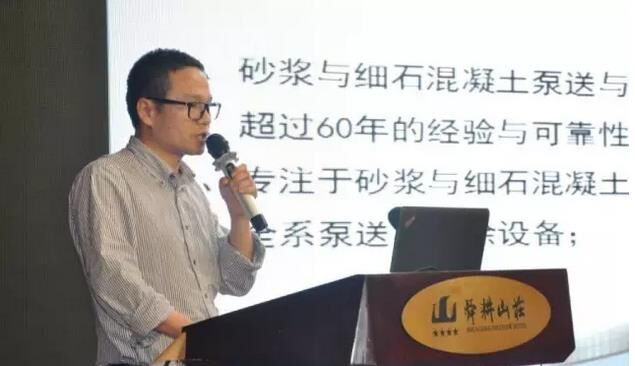 ▼ 南方路機(jī)市場(chǎng)總監(jiān)周煒做“未來(lái)智能化干混砂漿工廠”的演講;