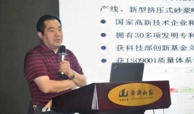 ▼ 江蘇萊斯兆遠(yuǎn)環(huán)保科技有限公司總經(jīng)理徐祥萊做“國(guó)際國(guó)內(nèi)技術(shù)領(lǐng)先的節(jié)能環(huán)保型連續(xù)式干粉砂漿生產(chǎn)線”的演講;