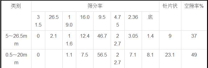 在一個(gè)工地五層樓板,C25 砼,原配合比碎石粒徑0.5~31.5mm 連續(xù)級(jí)配,變?yōu)?. 5~2cm 粒徑,砂率仍用0.35 不變,配料員認(rèn)為石子粒徑變小,用在同等級(jí)砼配合比上更暢,未核實(shí)材料變化情況,就原配合比直接作為施工配合比,結(jié)果造成連續(xù)彎管堵塞,現(xiàn)將兩種規(guī)格材料碎石分析如下: