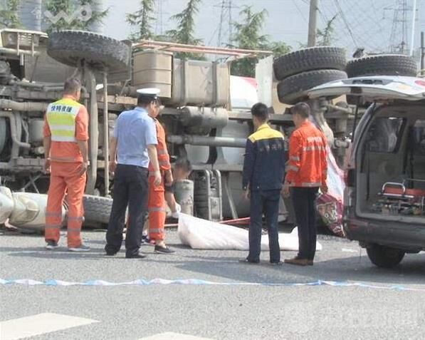 事故發(fā)生之后,南京交警十大隊民警迅速趕到現(xiàn)場,設(shè)置路障、保護(hù)現(xiàn)場,呼叫救護(hù)車過來救助傷者。荔枝新聞通訊員在現(xiàn)場看到,一輛大型水泥攪拌車側(cè)翻在紅綠燈路口中間,車頭頂著一輛踏板電瓶車,騎車的男子被攪拌車壓在底下,已經(jīng)死亡。肇事的水泥攪拌車駕駛員也投案自首。