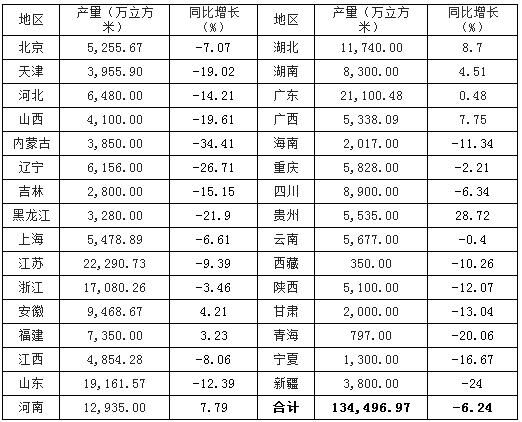表2. 2015年全國(guó)商品混凝土產(chǎn)量分省市統(tǒng)計(jì)表