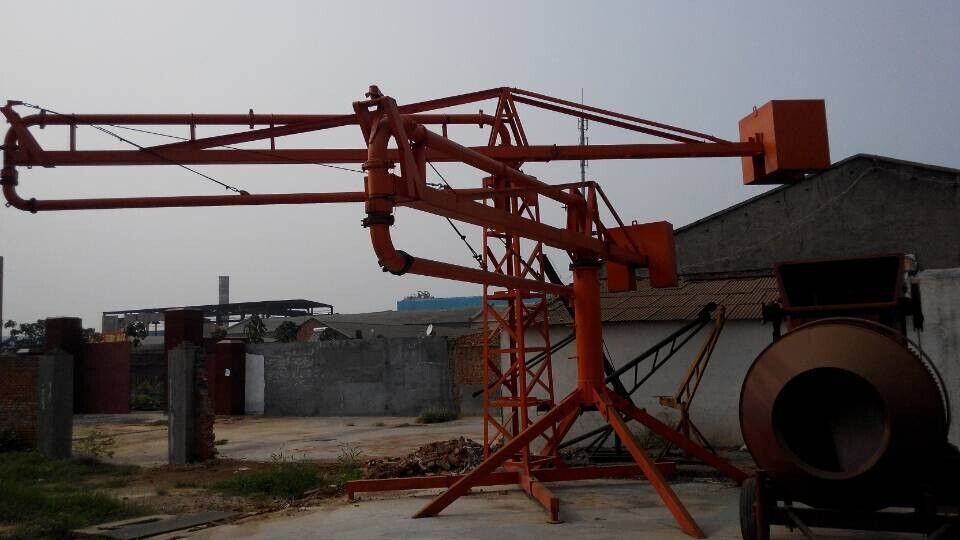 河南金源布料機(jī)桿采用回轉(zhuǎn),臂架式布料結(jié)構(gòu),配用125MM輸送管,360度回轉(zhuǎn),整機(jī)手動(dòng)操作。具有結(jié)構(gòu)簡(jiǎn)單,強(qiáng)度、剛性可靠,操作簡(jiǎn)單,靈活,維修方便等特點(diǎn),與混凝土泵配套使用可廣泛的應(yīng)用于民用與工業(yè)建筑的混凝土澆注工程中
