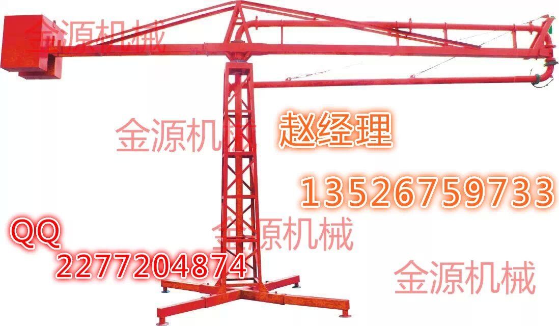 結(jié)構(gòu):、插銷、立架、構(gòu)成的底座是固定部分,其上通過回轉(zhuǎn)支承與上部回轉(zhuǎn)部分相連,上主梁架、平衡臂、平衡臂架拉桿、上橫桿組成后回轉(zhuǎn)部分。立管上有回轉(zhuǎn)卡篐接頭。通過人力拉動,可使整個(gè)回轉(zhuǎn)部分回轉(zhuǎn)360度。上梁主架前端連接有一個(gè)回轉(zhuǎn)支座與前橫桿、前拉桿組成前回轉(zhuǎn)部分,在人力拉動下可繞回轉(zhuǎn)支座旋轉(zhuǎn)300度。由兩部分回轉(zhuǎn)架組成的合成運(yùn)動就能覆蓋所有布料半徑范圍的布料點(diǎn)。