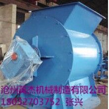 回轉(zhuǎn)卸料器的結(jié)構(gòu)是回轉(zhuǎn)葉輪、殼體、驅(qū)動(dòng)裝置等,回轉(zhuǎn)葉輪上都焊有耐磨板從而提高了葉輪的使用壽命;回轉(zhuǎn)卸料器的入料口中心距和殼體中心線有一定的偏差,是為了適用于顆粒較大的物料的進(jìn)入。      回轉(zhuǎn)卸料器的殼體內(nèi)襯大都裝有抗磨層;葉輪是由兩端軸承支承,可以保證葉輪和殼體之間的間隙均勻;由于入料溫度較高,葉輪與殼體之間留有相應(yīng)的間隙。兩端密封是用石棉盤根密封、方式簡(jiǎn)單、密封性好,容易操作及更換。