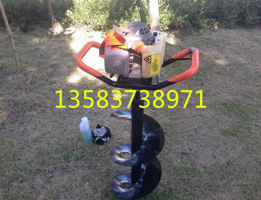 地鉆由小型通用汽油機,齒輪箱及特殊設(shè)計的鉆具組成.適合在土地,凍土,冰層上打孔.廣泛用于園林,種植,植樹,物探,道路建設(shè)等領(lǐng)域. 2.鉆頭采用錳鋼合成更加的堅硬。對硬土質(zhì),超硬土質(zhì),粘土,凍土等都能工作。 3.地鉆可根據(jù)樹種,選配多種規(guī)格的鉆頭,以滿足用戶需要。 4.地鉆能夠讓人們從繁重的體力勞動解放出來,廣泛應(yīng)用于植樹造林,栽種果林、籬笆、及秋季給果樹施肥等。適合各種地形,效率高,便于攜帶及野外田地作業(yè)。 5.地鉆既可以單人操作,又可雙人操作,經(jīng)濟實用。 注意事項:1.使用正品2T(二沖程)FC級機油,嚴禁使用4T(四沖程)機油。 2.嚴禁使用純汽油。 3.嚴格按25比1的比例兌油. 4.新機器不可高速使用,請低速磨合3小時。 5.嚴禁在高速的時候突然關(guān)停發(fā)動機,否則會使下次開機啟動困難。 6.感覺機器震動異常,請立即停機檢查,是否破損,松動,偏心。 7.嚴禁在有亂石堆的草地上使用。 8.鉆頭有嚴格的尺寸限制,嚴禁私自改裝或使用增大號鉆頭. 9.每工作一段時間清除火花塞、消音器積碳,清洗空氣濾清器,向齒輪箱加注黃油。 10.遇到問題自己無法解決的,不要私自拆裝。 11.機器長時間不用時,應(yīng)該將剩余的燃油倒出,然后發(fā)動機器將化油器內(nèi)的燃油全部燃燒干凈。 12.想讓機器運轉(zhuǎn)更穩(wěn)定,壽命更長請經(jīng)常保養(yǎng)。 安全事項: A.人身安全:嚴禁在室內(nèi)添加汽油,嚴防火災(zāi);機器運行時,嚴禁手腳靠近鉆頭;清理或檢查機器時必須停機。 B.機器安全:地鉆起動前必須清理草坪上的雜物,確保機器安全運轉(zhuǎn)。