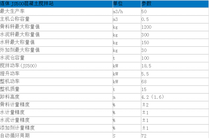 連體js500混凝土攪拌站技術(shù)參數(shù)