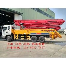 上裝配置:四節(jié)臂垂直高度三十一米,采用高強鋼材料,混凝土輸送缸1600mm,主油泵韓國川崎200或力士樂190,50料斗,臂架為紅色,底座為黃色。