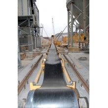 皮輸送帶根據(jù)摩擦傳動原理而運動,根據(jù)輸送工藝要求,可以單臺輸送,也可多臺皮帶輸送機組成或與其他輸送設(shè)備組成水平或傾斜的輸送系統(tǒng),以滿足不同布置形式的作業(yè)線需要。