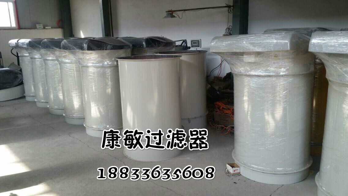 單機(jī)脈沖濾筒除塵器是一種圓形可拆的金屬濾筒,底板上有14個(gè)嵌入圓形孔,它設(shè)有14個(gè)濾芯,扎緊在上端1個(gè)振動(dòng)器的吊架上,定時(shí)震動(dòng),使濾芯阻留下來的灰塵降落在倉(cāng)內(nèi)。