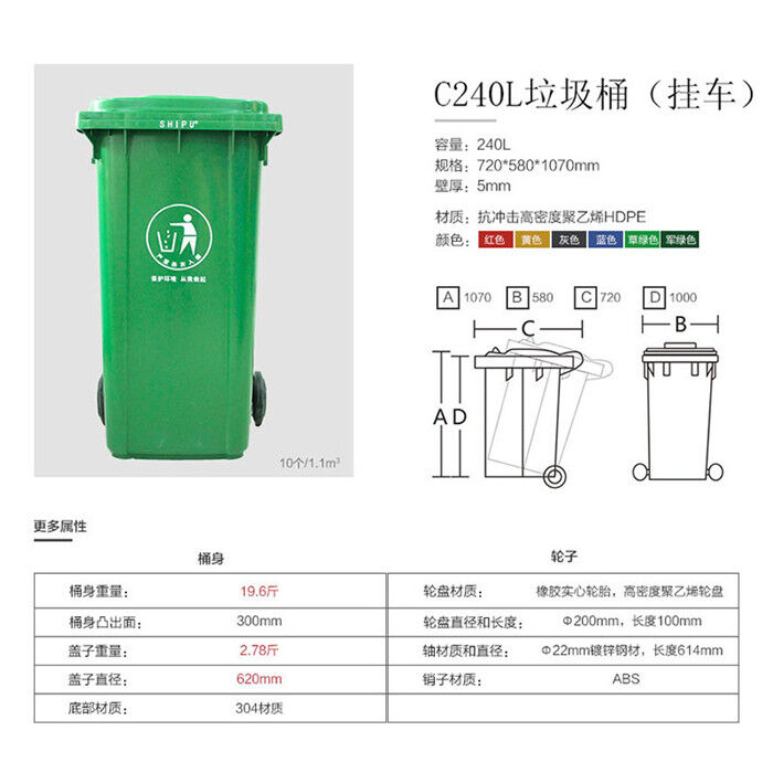 品名:240L塑料垃圾桶