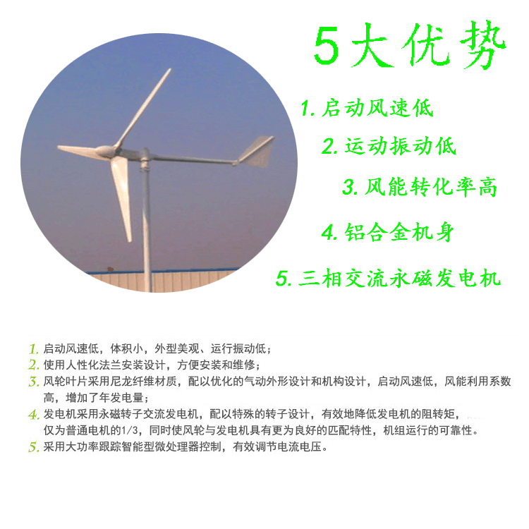 1千瓦風(fēng)力交流發(fā)電機(jī) 風(fēng)力發(fā)電機(jī)家用200v1000w屋頂安裝發(fā)電