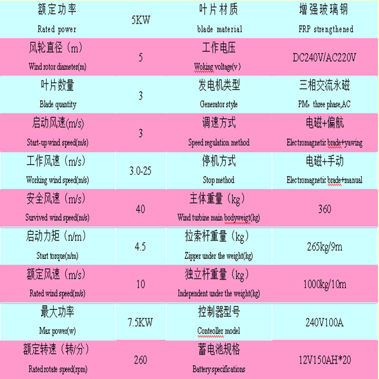 風(fēng)輪直徑 6m 額定風(fēng)速 10m/s
