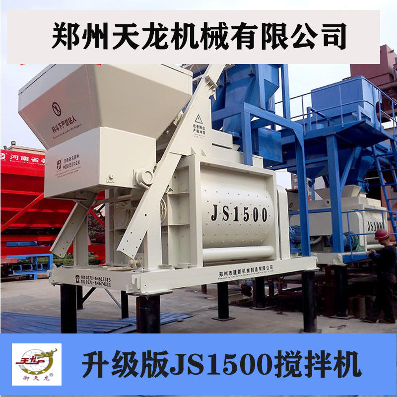 JS1500型混凝土攪拌機(jī)每次出料為1500公升,是鄭州天龍成熟的產(chǎn)品之一,在國(guó)內(nèi)首屈一指,該型號(hào)攪拌機(jī)攪拌能力強(qiáng),工作效率高,既可獨(dú)立作業(yè),也可用作HZS50HZS60攪拌站的主機(jī),與配料機(jī)組成簡(jiǎn)易的5060型混凝土攪拌站。