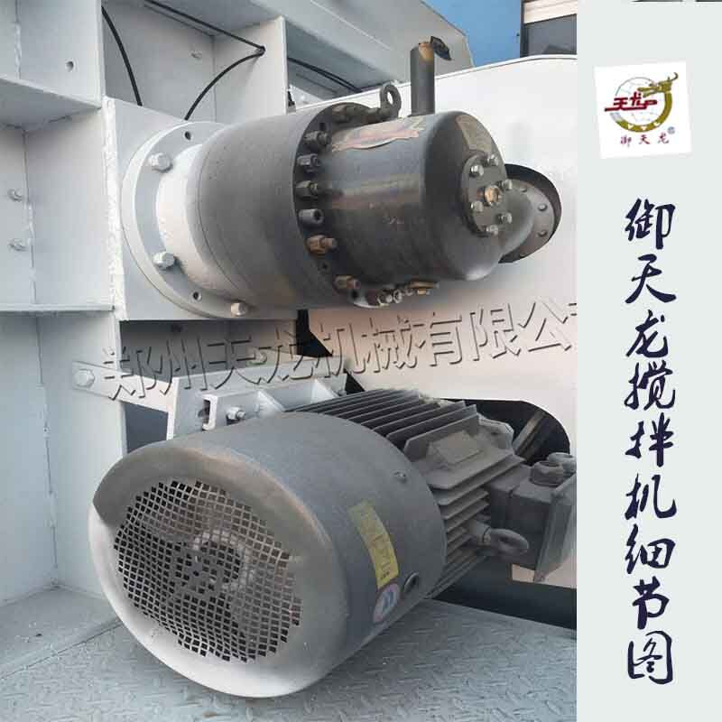 攪拌系統(tǒng)由電動機、皮帶輪、減速器、開式齒輪、攪筒攪拌裝置、供油裝置等部件組成。電動機帶動二級齒輪減速器,減速器兩軸經(jīng)兩開式齒輪分別帶動兩根水平的攪拌軸反向等速回轉。