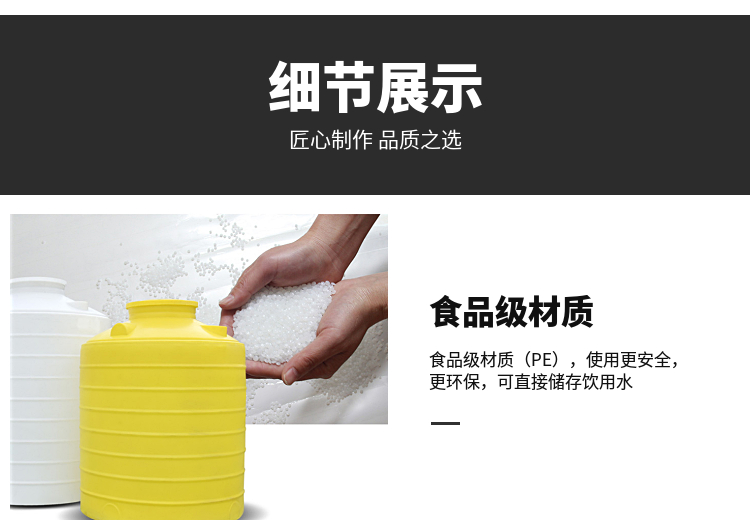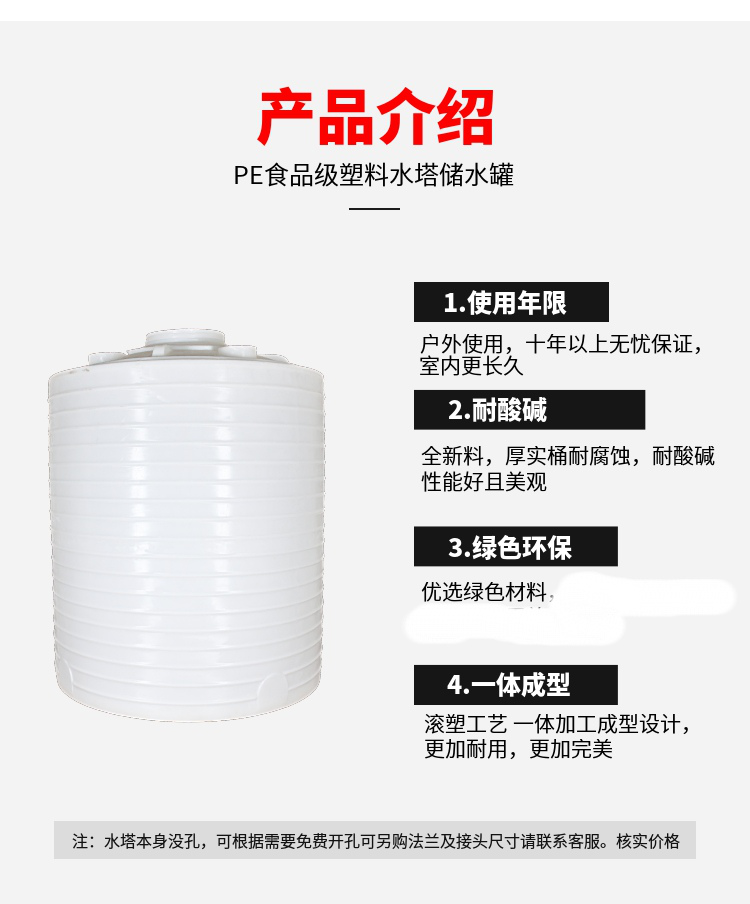 貴州1噸水箱、貴陽儲(chǔ)水箱、貴陽水塔用途:高層建筑二次供水、蓄水水處理凈化設(shè)備配套工業(yè)用冷卻水化工制劑、化工原料、各種油品、飲品的儲(chǔ)存、運(yùn)輸。質(zhì)量保證:7天包換(非人為及不可抗拒的因素),1年免費(fèi)維修。塑料平底儲(chǔ)罐:主材:進(jìn)口韓國聚乙塑膠原料。 常用顏色:橙、藍(lán)、綠、黑等。性能:一次成型內(nèi)外光滑,具有良好的衛(wèi)生性與抗紫外線能力。撞擊,搞強(qiáng)震,不易老化,不長水藻,易清洗,安裝移動(dòng)方便。應(yīng)用范圍:高層建筑二次供水,城鎮(zhèn),農(nóng)村屋頂蓄水,廣泛應(yīng)用于食品、制藥、賓館、酒店、電子、化工噴織等行業(yè)。 安裝說明及注意事項(xiàng):1、每只水箱開進(jìn)水、出水、排污三孔,有特殊要求另定。2、屋頂水箱應(yīng)放置在受力狀況良好的樓梯開間或平臺(tái)上。3、水箱為普力容器,故控制液位應(yīng)加裝浮球或其它有效控制裝置。