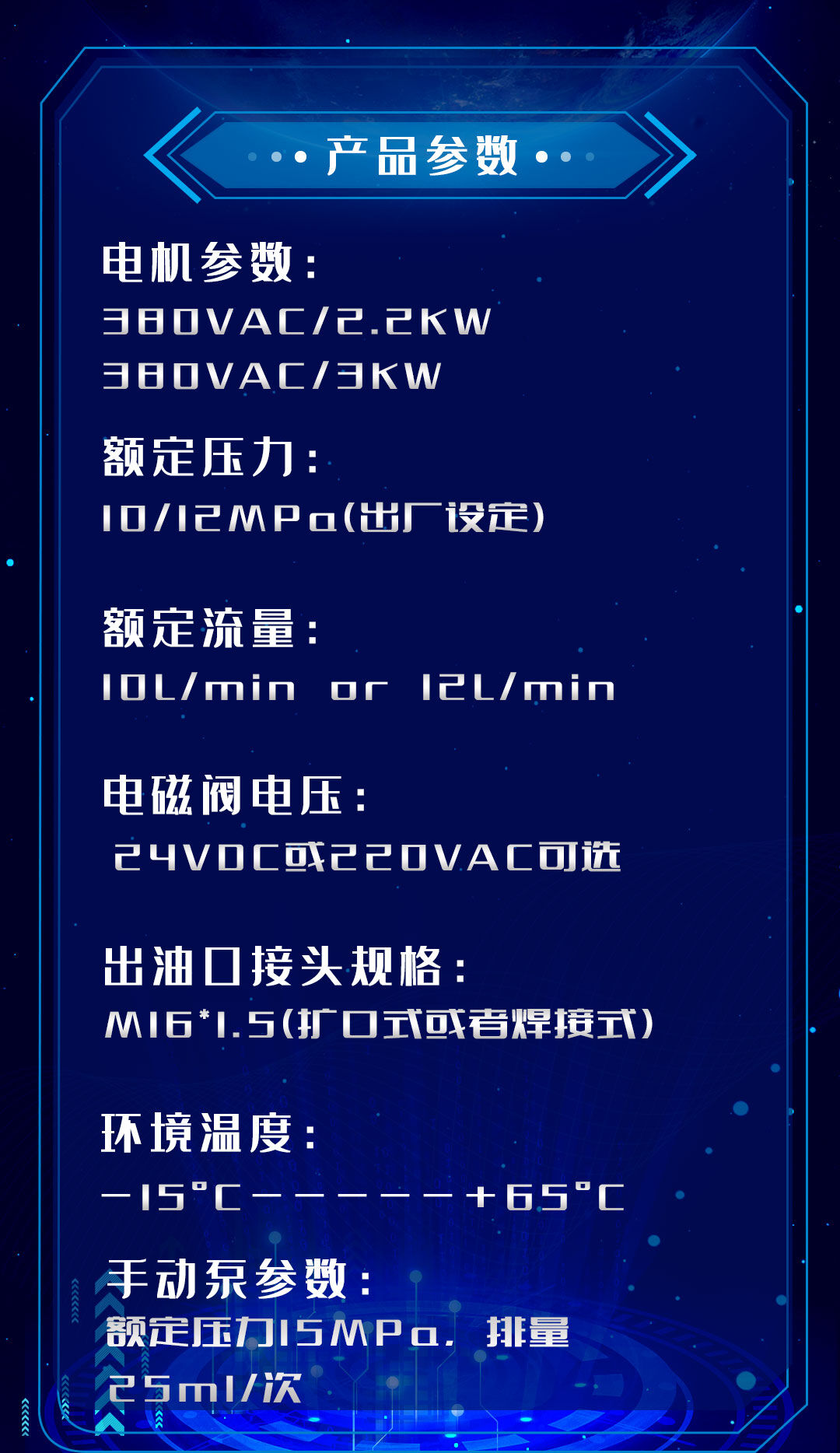 專門的手動(dòng)泵裝置,避免了設(shè)備由于停電等特殊情況而導(dǎo)致液壓油泵不能正常運(yùn)行所造成的損失。有臥式泵站和立式泵站選擇,配套液壓通用油缸使用。