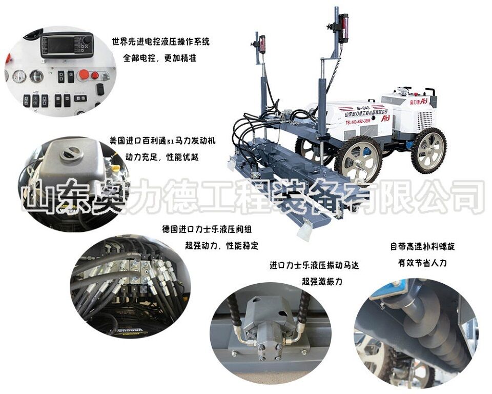 由刮板、振動(dòng)器、振動(dòng)板、絞龍等部件組成,將攪拌、找平、震平、振搗,等多道工序整合到一起,由機(jī)器一次性完成。提高效率,節(jié)省人工。