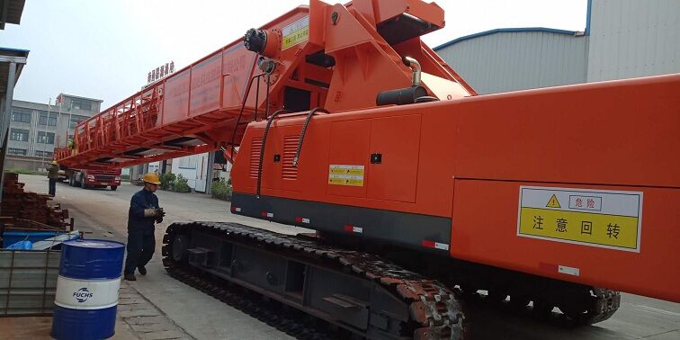 布料機(jī)在配種裝置上可以有兩種方式進(jìn)行選擇,一方式是把套入在車架主梁兩側(cè)的活動(dòng)裝置、配重腔以及伸縮油缸布置在上車架的上方;另一種方式則是將上述的裝置安裝于矩形空心滑槽與滑桿當(dāng)中。