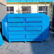 公司小風(fēng)量的廢氣凈化塔由抽屜式組成,大量風(fēng)吸附塔由上箱體、下支架、工作爬梯、平臺護欄和卸料裝置四部分組成。