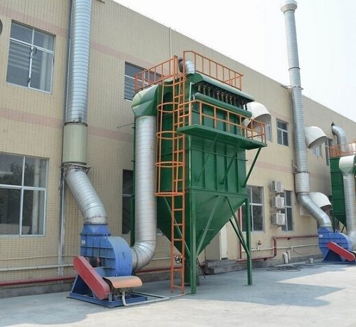 隨著過(guò)濾時(shí)間的延長(zhǎng)、濾袋上的粉塵層不斷積厚,除塵設(shè)備的阻力不斷上升,當(dāng)設(shè)備阻力上升到設(shè)定值時(shí),清灰調(diào)協(xié)開(kāi)始進(jìn)行清灰,首先,一分分室提升閥關(guān)閉,將過(guò)濾氣流截?cái)?,然后電磁脈動(dòng)沖閥開(kāi)啟,壓縮空氣以極短促的時(shí)間在上箱體內(nèi)迅速膨脹,涌入濾袋,使濾袋膨脹變形產(chǎn)生振動(dòng),并在逆向氣流沖刷的作用下,附著在濾袋外表面上的粉塵剝離落入灰斗中,清灰完畢后,電磁脈沖閥關(guān)閉,提升閥打開(kāi),該室又恢復(fù)過(guò)濾狀態(tài)。清灰各室依次進(jìn)行,從第一室清灰開(kāi)始至下一次清灰開(kāi)始為一個(gè)清灰周期。