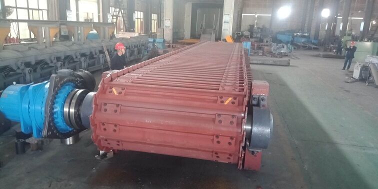 槽板為圓弧搭接式(OK板),采用低合金鋼板組焊而成,強(qiáng)度高、耐磨損、不漏料,輸送槽底板厚度≥16-25mm、此板沖壓成型,在槽板上下增加了80-120mm加強(qiáng)筋,提高了整體的剛度、強(qiáng)度及耐磨性,延長(zhǎng)使用壽命。槽板互相搭接,工作時(shí)不漏料,槽板上下加強(qiáng),具有更大的承載能力;