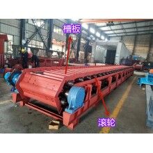 板式給料機運行部件由牽引鏈條,承載構(gòu)件行走滾輪和輸送槽板等組成。