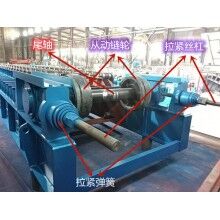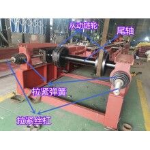 主要由從動軸、兩個從動鏈輪、軸承、軸承座,拉緊彈簧及拉緊螺桿等組成。鏈輪是通過漲緊套固定在軸上,軸的兩端裝有雙列調(diào)心滾子軸承和軸承座。軸承座裝在機架兩側(cè),并在滑軌之間前后滑動。