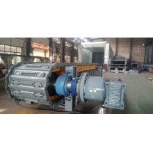 其主要作用是為設(shè)備提供動力及將電機(jī)轉(zhuǎn)速減速至設(shè)備輸送物料需要的轉(zhuǎn)速。傳動部件主要由電機(jī)、齒輪減速箱等配套件組成。電機(jī)和減速箱固定在同一座架上,其間由齒輪聯(lián)軸器聯(lián)接,構(gòu)成一個獨(dú)立的部件。