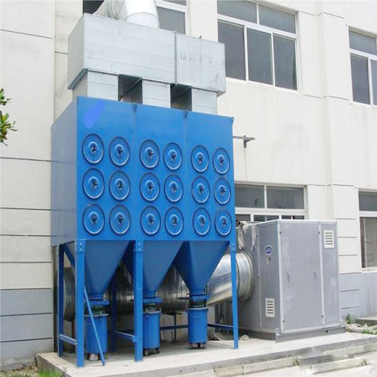 在正常運行時,如:重力、慣性力、碰撞、靜電吸附,篩濾作用等。含塵空氣由頂部入口進入濾筒式除塵器,較大的粉塵顆粒因截面積增大,風速下降而提高直接沉降,較小的煙塵粉塵顆粒通過濾筒。粉塵被捕集在過濾筒外邊,清潔空氣則經(jīng)由濾筒中心進入清潔空氣室,再經(jīng)出口由引風機排出。隨著過濾不斷進行,濾筒表面的煙塵粉塵越積越多,阻力不斷升高,及至濾筒清灰時,固態(tài)控制將操縱電磁閥以打開一個空氣隔膜閥,于是高壓空氣便直接沖入所選濾筒中心,把捕集在濾件表面上的粉塵吹掃一清,使濾筒再生。粉塵則隨主氣流所趨,并在重力的作用下向下落入塵斗中。周而復始,連續(xù)過濾,使設(shè)備連續(xù)進行得到保障。