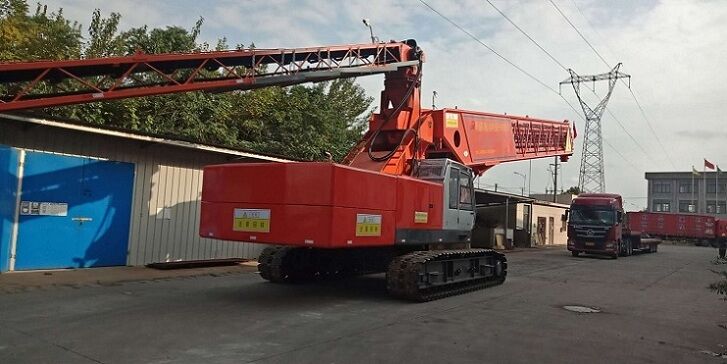 混凝土澆筑的快慢,一直是困擾建筑業(yè)施工周期的重要因素,根據(jù)不同的施工需求,可以選擇拖泵、車(chē)載泵或者是泵車(chē)來(lái)完成混凝土最后的澆筑工作。但是,目前來(lái)說(shuō),即便是大排量的混凝土泵車(chē),其實(shí)際的泵送混凝土的速度也是有限的,而且按照現(xiàn)階段泵車(chē)的技術(shù)來(lái)說(shuō),要想提高其泵送速度也很難實(shí)現(xiàn)。針對(duì)這個(gè)問(wèn)題,我公司研發(fā)的伸縮式混凝土布料機(jī),就大大提高了混凝土的澆筑速度。其中60米長(zhǎng)伸縮式移動(dòng)布料機(jī)是國(guó)內(nèi)較大的履帶伸縮式皮帶輸送機(jī)。