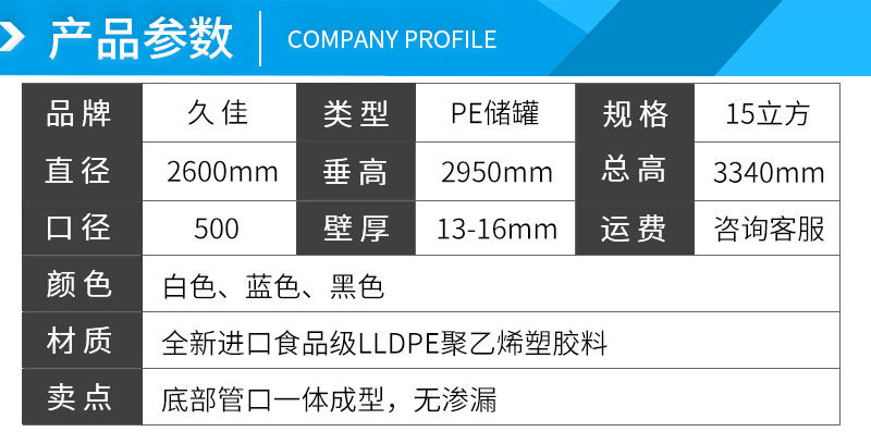 1、以進(jìn)口LLDPE為原料,采用滾塑一次成型;
